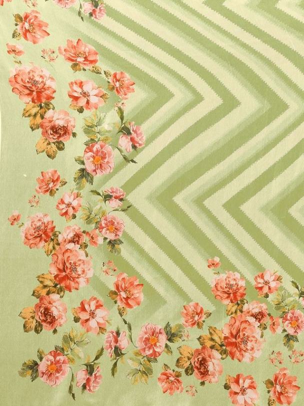 Ready-to-Wear Light Green Floral Georgette Saree with Attached Blouse Piece [ Export Quality ]