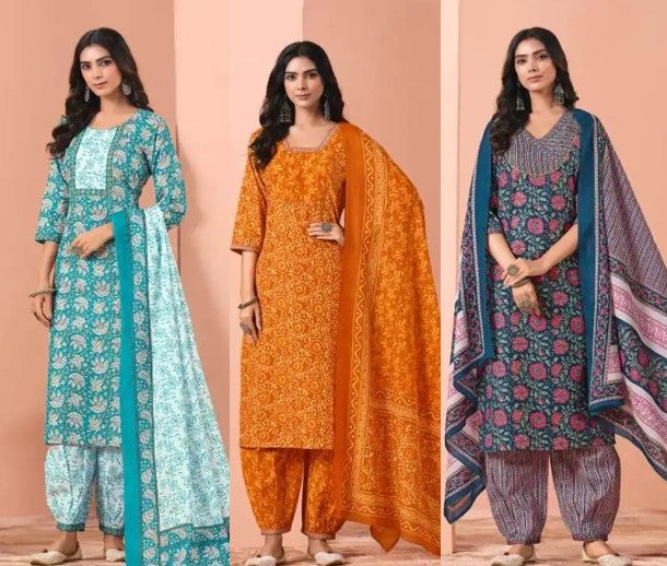 Elegant & Comfortable Cotton 3 Pcs Punjabi Suit with Dupatta & Pathani Salwar [ Export Quality]